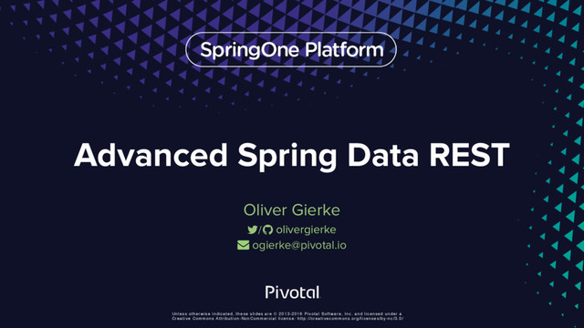 Inc. and licensed under a Creative Commons Attribution-NonCommercial license: http://creativecommons.org/licenses/by-nc/3.0/ Advanced Spring Data REST Oliver Gierke / olivergierke [email protected]