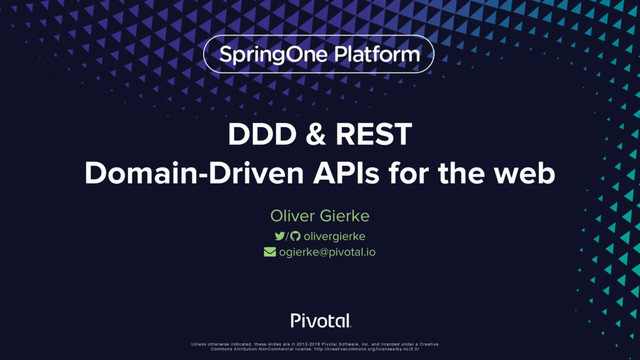 Inc. and licensed under a Creative Commons Attribution-NonCommercial license: http://creativecommons.org/licenses/by-nc/3.0/ DDD & REST Domain-Driven APIs for the web Oliver Gierke / olivergierke [email protected]