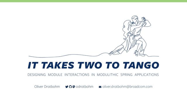 The talk presents different approaches to designing application module interactions and compares them regarding their applicability, effect on testability, consistency, error scenarios and how they affect the modularity of the system overall.
