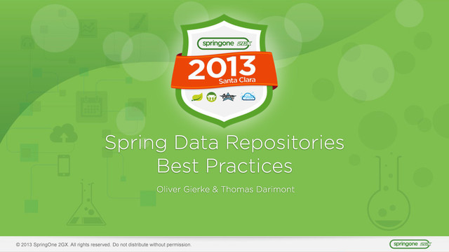 Wed, 2:30pm Your Data, Your Search, Elasticsearch - Wed, 2:30pm Spring Data Community Lightning Talks - Thu, 8:30am Researching Cancer in the Cloud with Spring - Thu, 12:45pm