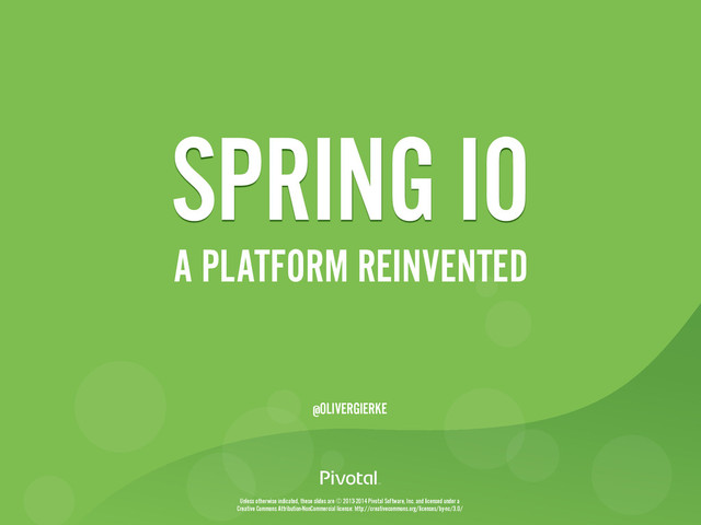Inc. and licensed under a Creative Commons Attribution-NonCommercial license: http://creativecommons.org/licenses/by-nc/3.0/ SPRING IO A PLATFORM REINVENTED @OLIVERGIERKE