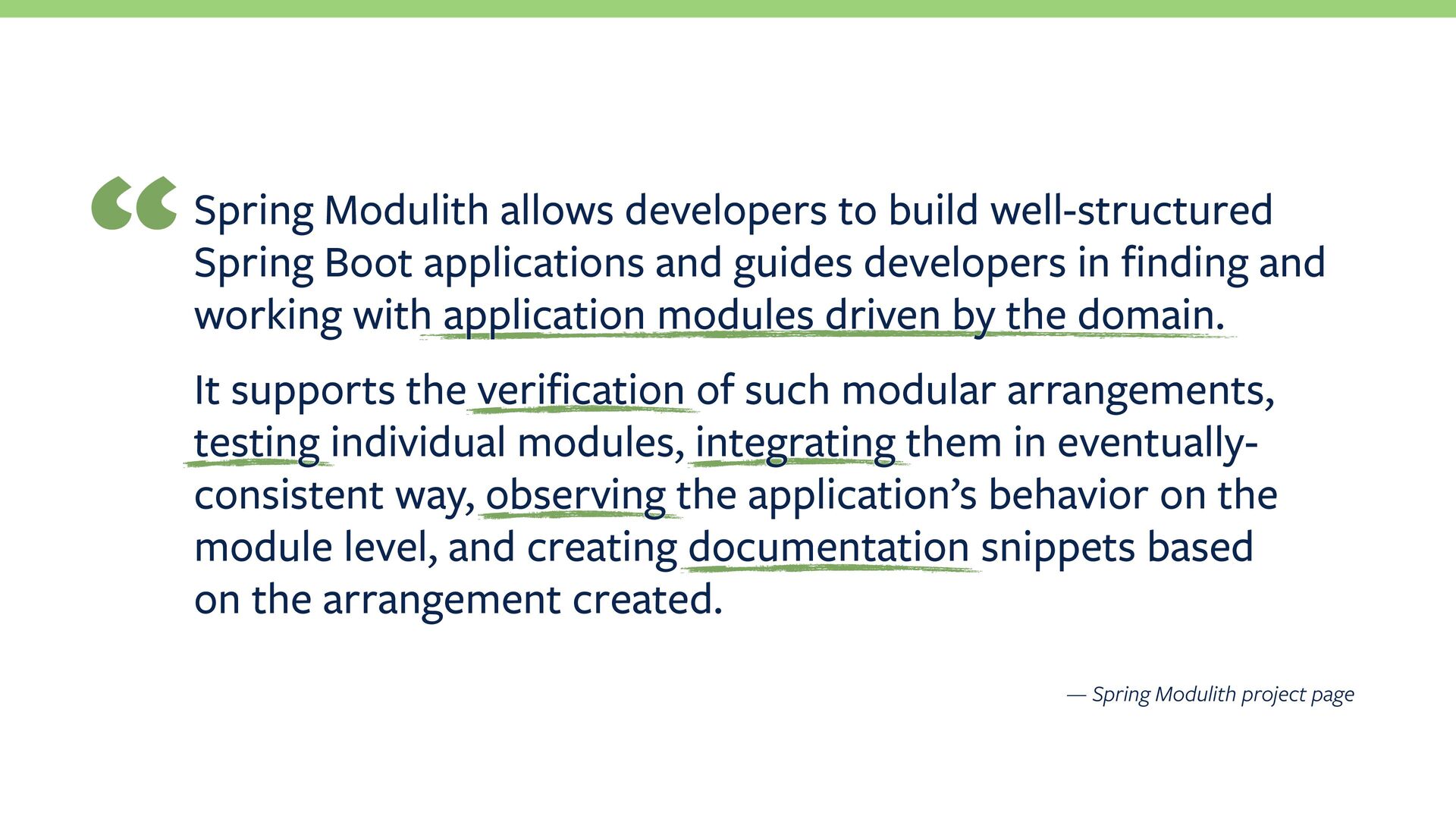 Spring Modulith is a relatively new addition to the Spring ecosystem and guides developers in structuring their applications to create more maintainable software.