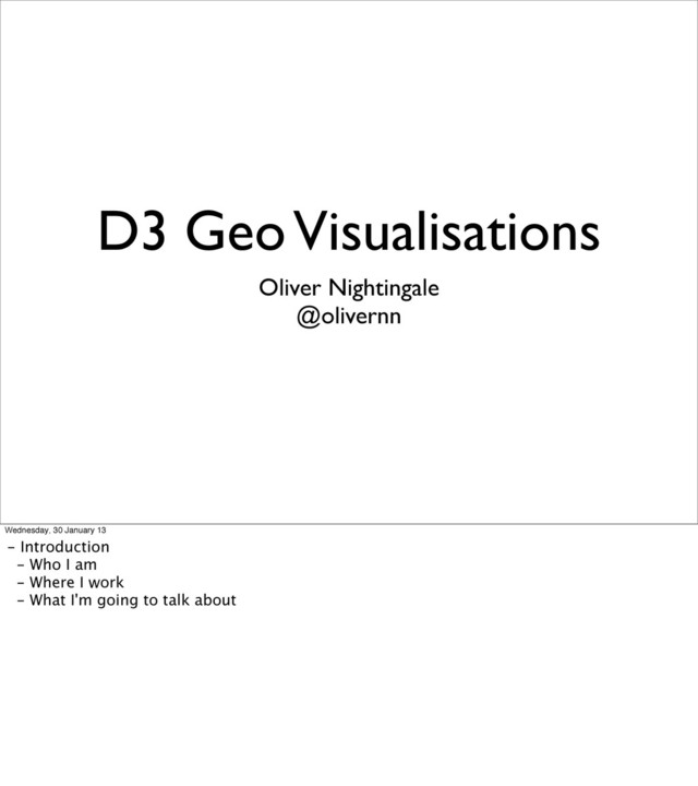 '#2b63d4', '#26d6d9', '#38c78e', '#94bd42', '#f2dd00', '#ff8700']) Wednesday, 30 January 13 - Colour Scales - explain the inputs and outputs - similar to CSS gradient colour stops - interpolating colours is hard by hand - Position Scales - same concept as colour scales - usage in the site