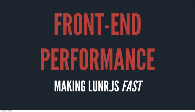 FRONT-END PERFORMANCE MAKING LUNR.JS FAST Thursday, 2 May 13