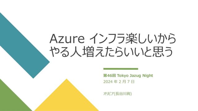 Azure インフラ楽しいから やる人増えたらいいと思う 第46回 Tokyo Jazug Night 2024 年 2