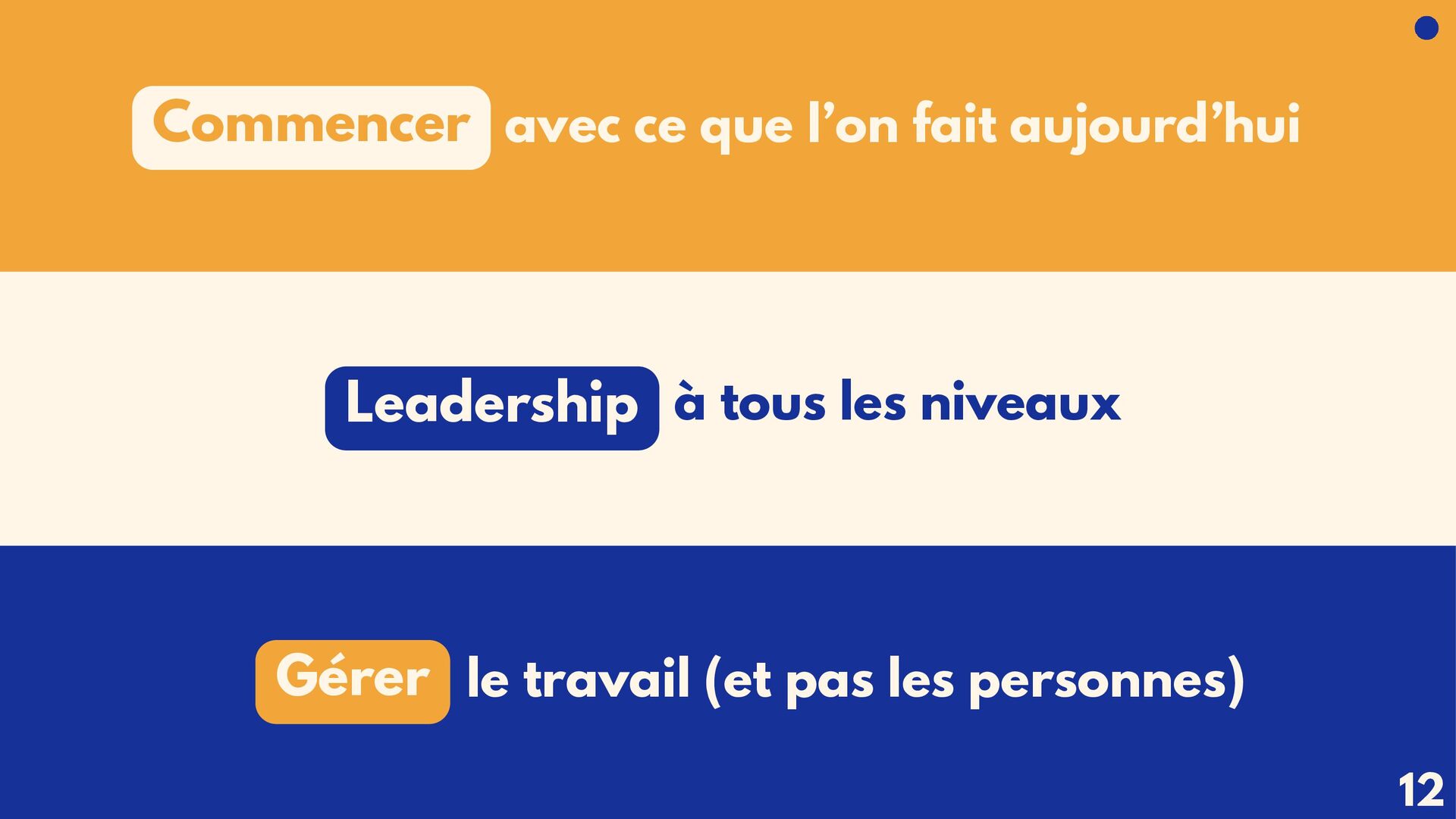 les conversations autour du système Standardiser la prise de décision (coût du délai) Ajuster le système de bout-en-bout Gérer les dépendances transverses Aligner les parties prenantes Fluidifier les arbitrages et la priorisation
