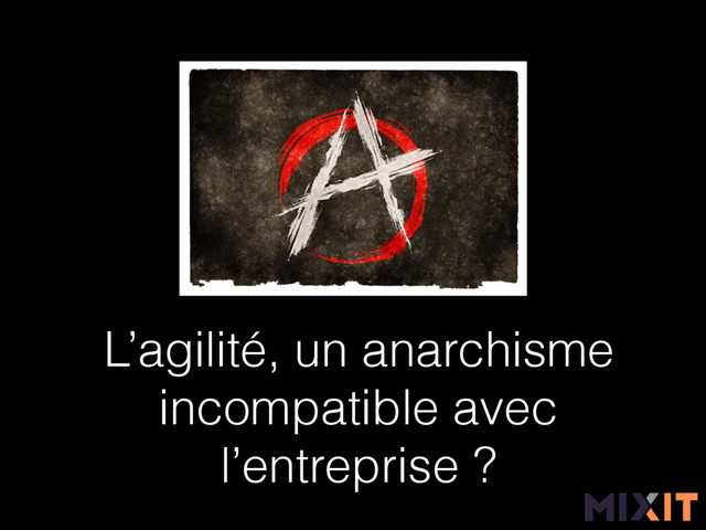 L'agilité ne fais pas toujours bon ménage avec la culture d'entreprise. Si certaines entreprises réforment totalement leur culture pour adopter l'agilité, il arrive aussi que ce soit l'agilité qui soit vidée de sa substance pour cohabiter avec la culture existante. à travers un voyage au cœur de l'anarchisme et de ses valeurs (l'auto-organisation, l'adaptation au changement, la responsabilisation de chacun et le refus du dogmatisme ) nous retrouverons le chemin du manifeste agile afin d'expliquer cette rupture qu'a apporté l'agilité et pourquoi elle fait débat ici ou là, quand pour certains elle n'est que pure raison.