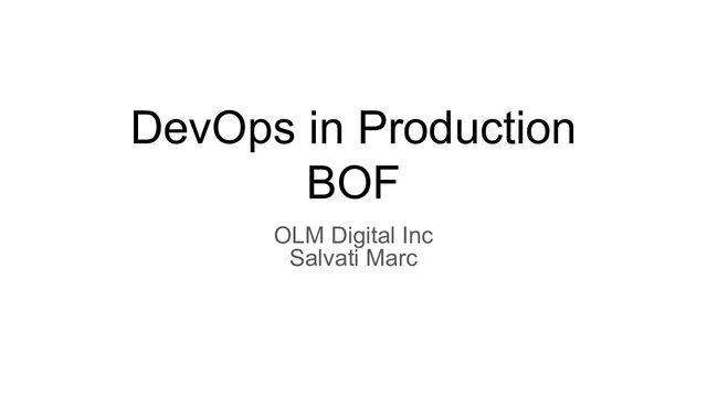 To face such a ratio, production companies need to maximize the use of DevOps technologies. In this BOF we'd like to share production proof knowledge, tips and tricks to improve the delivery and robustness of technologies to production.