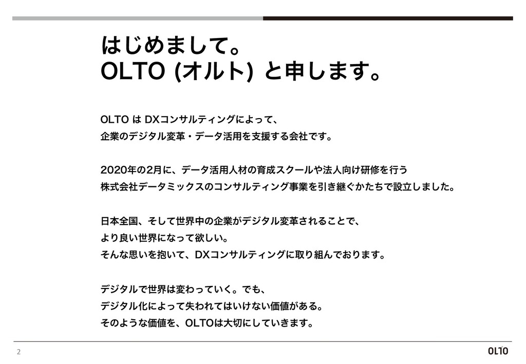 ͡Ί·ͯ͠ɻ 0-50 Φϧτ ͱਃ͠·͢ɻ 0-50 %9ίϯαϧςΟϯάʹΑͬͯɺ اۀͷσδλϧมֵɾσʔλ׆༻Λࢧԉ͢ΔձࣾͰ͢ɻ ͷ݄ʹɺσʔλ׆༻ਓࡐͷҭεΫʔϧ๏ਓ͚ݚमΛߦ͏ גࣜձࣾσʔλϛοΫεͷίϯαϧςΟϯάࣄۀΛҾ͖ܧ͙͔ͨͪͰઃཱ͠·ͨ͠ɻ ຊશࠃɺͦͯ͠ੈքதͷاۀ͕σδλϧมֵ͞ΕΔ͜ͱͰɺ