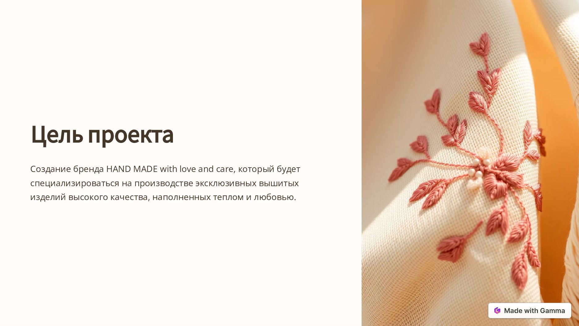 который будет специализироваться на производстве эксклюзивных вышитых изделий высокого качества, наполненных теплом и любовью.