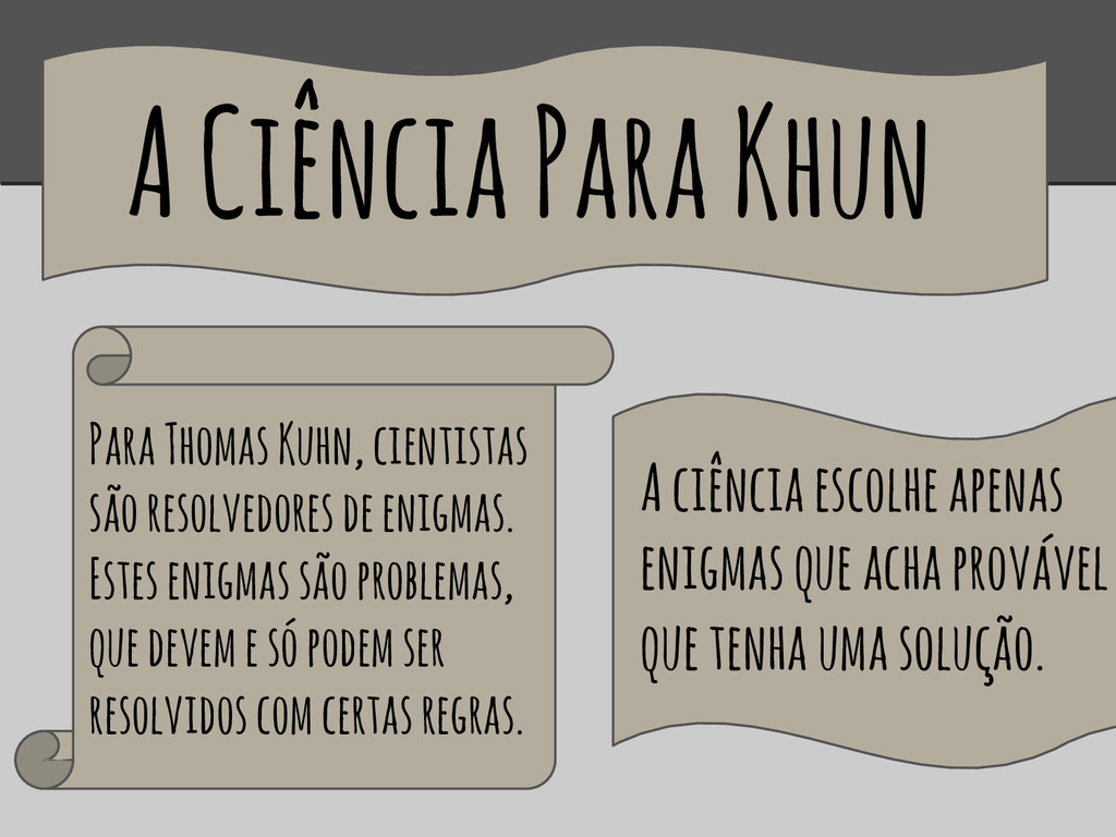 de enigmas. Estes enigmas são problemas, que devem e só podem ser resolvidos com certas regras. A ciência escolhe apenas enigmas que acha provável que tenha uma solução.