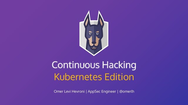 Kubernetes Edition Omer Levi Hevroni | AppSec Engineer | @omerlh