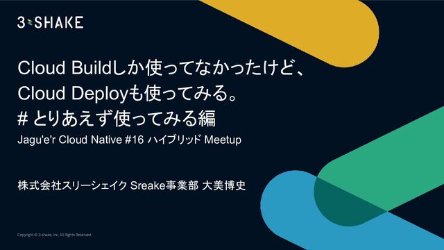 ハイブリッド Meetup 株式会社スリーシェイク Sreake事業部 大美博史 Copyright © 3-shake, Inc. All Rights Reserved.