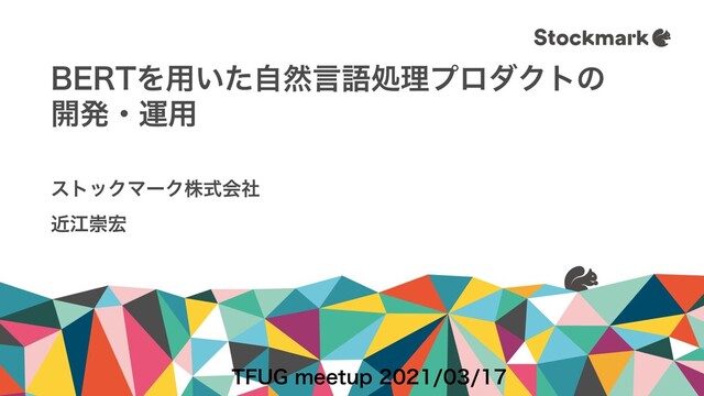 近江崇宏、「BERTを用いた自然言語処理プロダクトの開発・運用」 TensorFlow User Group Meetup #12 https://tfug-tokyo.connpass.com/event/204504/