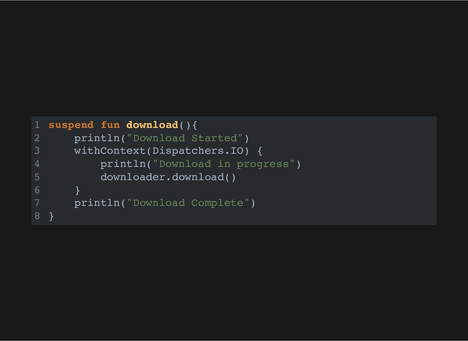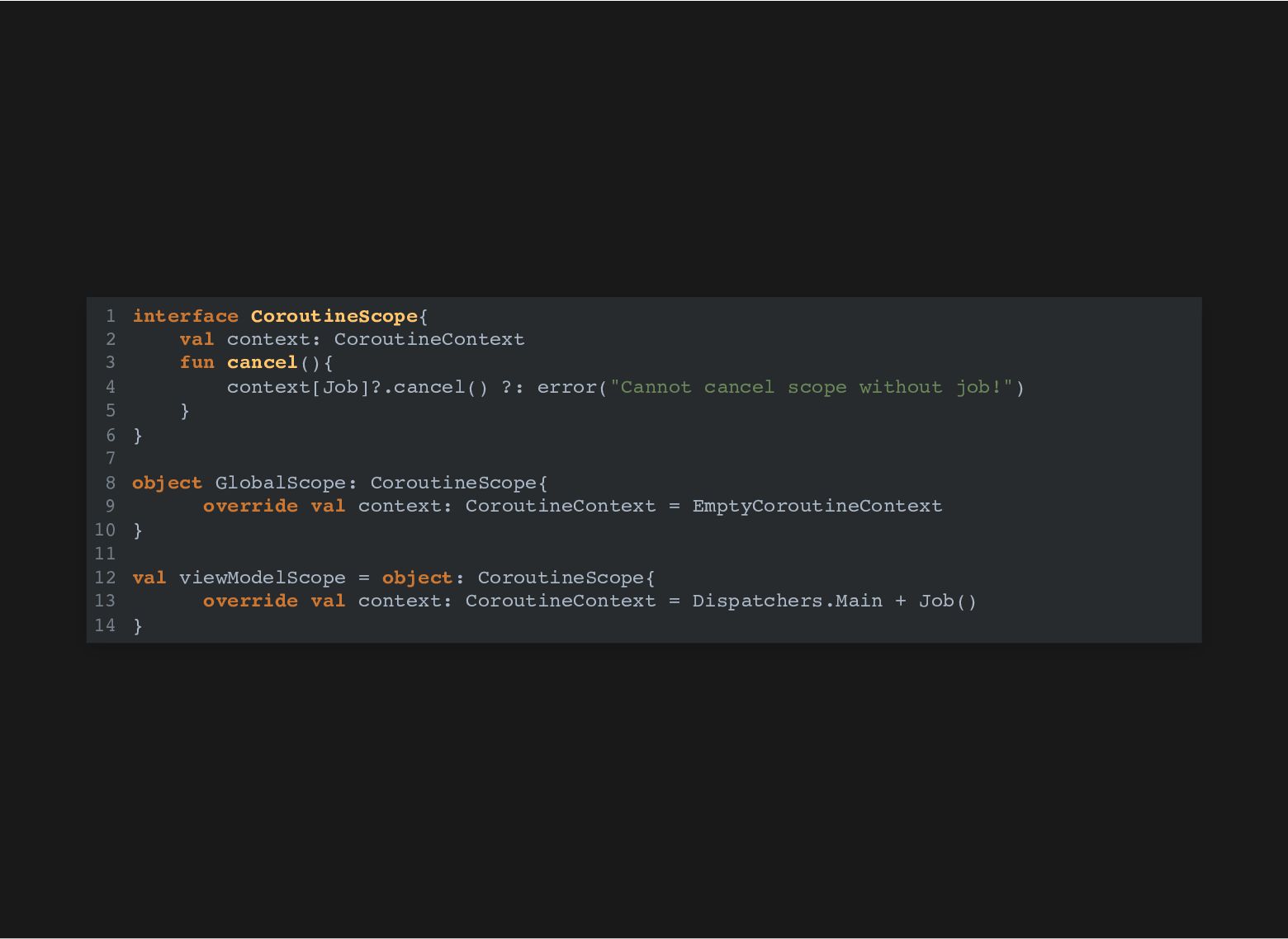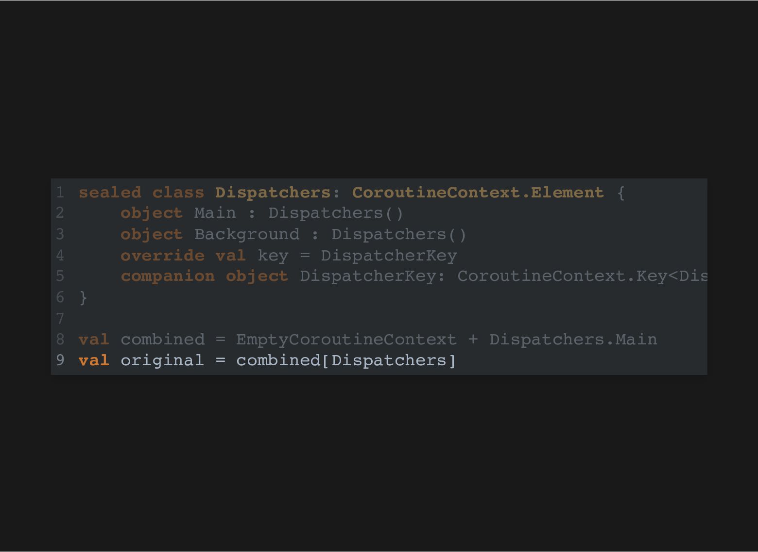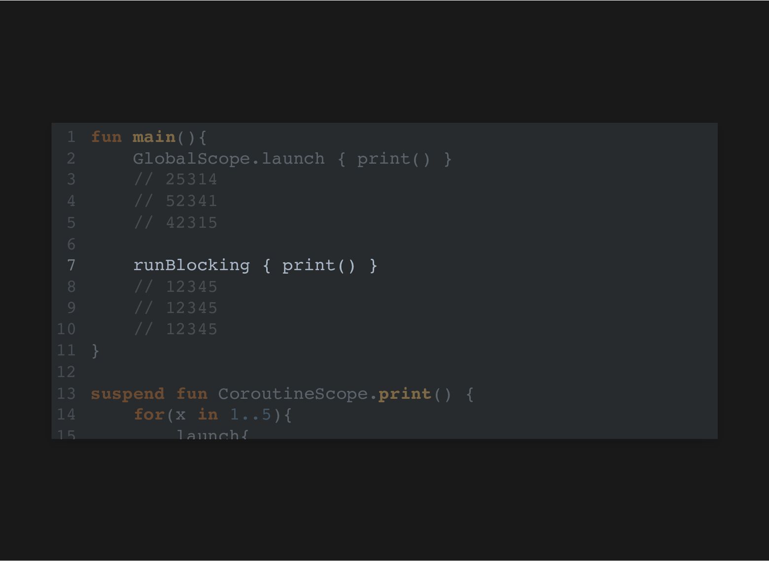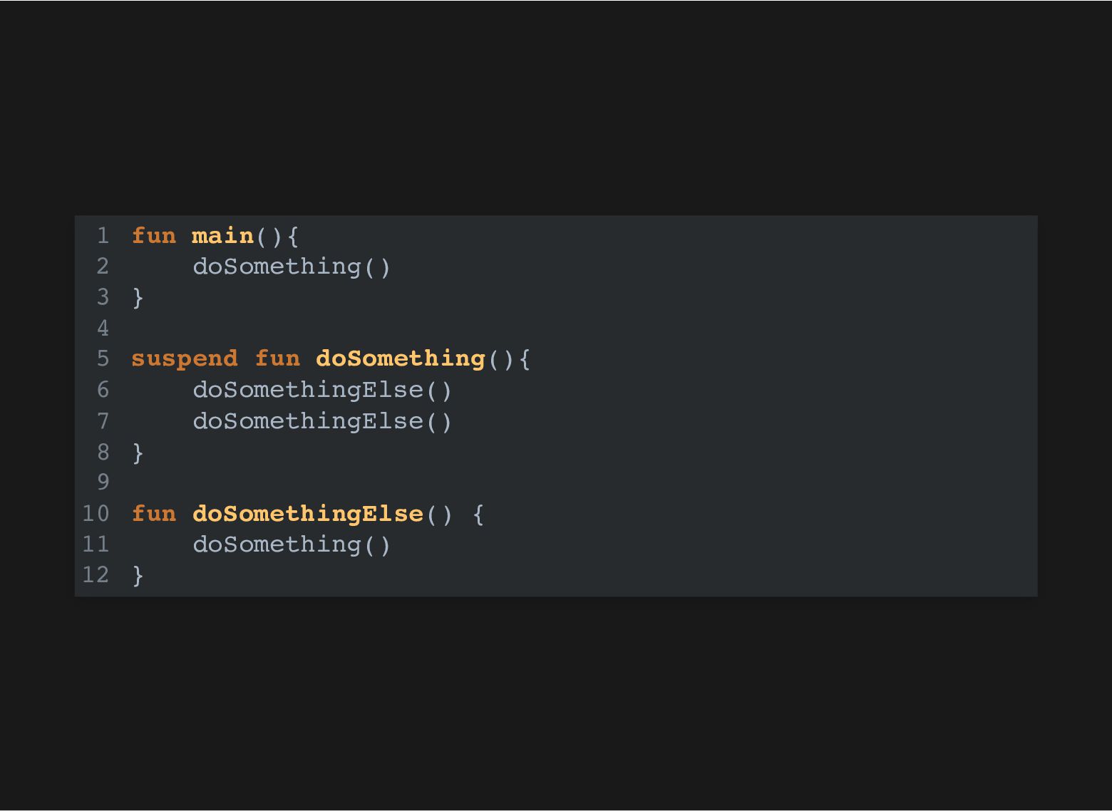 = object : Continuation<Unit>, CoroutineScope, Job { 3 init{ 4 context[Job]?.addChildren(this) 5 } 6 override val context = scopeContext + extraContext + this 7 override fun resumeWith(result: Result<Unit>) { 8 context[Job]?.waitForChildren() 9 } 10 } 11 12 val continuation = block.createCoroutineUnintercepted(completionCallback,complet 13 14 DispatchedContinuation(dispatcher,continuation).resumeWith(Result.success(Unit)) 15 } 16 val completionCallback = object : Continuation<Unit>, CoroutineScope, Job { fun CoroutineScope.launch(extraContext: CoroutineContext, block: suspend CoroutineSc 1 2 3 init{ 4 context[Job]?.addChildren(this) 5 } 6 override val context = scopeContext + extraContext + this 7 override fun resumeWith(result: Result<Unit>) { 8 context[Job]?.waitForChildren() 9 } 10 } 11 12 val continuation = block.createCoroutineUnintercepted(completionCallback,complet 13 14 DispatchedContinuation(dispatcher,continuation).resumeWith(Result.success(Unit)) 15 } 16 init{ context[Job]?.addChildren(this) } fun CoroutineScope.launch(extraContext: CoroutineContext, block: suspend CoroutineSc 1 2 val completionCallback = object : Continuation<Unit>, CoroutineScope, Job { 3 4 5 6 override val context = scopeContext + extraContext + this 7 override fun resumeWith(result: Result<Unit>) { 8 context[Job]?.waitForChildren() 9 } 10 } 11 12 val continuation = block.createCoroutineUnintercepted(completionCallback,complet 13 14 DispatchedContinuation(dispatcher,continuation).resumeWith(Result.success(Unit)) 15 } 16 context[Job]?.waitForChildren() fun CoroutineScope.launch(extraContext: CoroutineContext, block: suspend CoroutineSc 1 2 val completionCallback = object : Continuation<Unit>, CoroutineScope, Job { 3 init{ 4 context[Job]?.addChildren(this) 5 } 6 override val context = scopeContext + extraContext + this 7 override fun resumeWith(result: Result<Unit>) { 8 9 } 10 } 11 12 val continuation = block.createCoroutineUnintercepted(completionCallback,complet 13 14 DispatchedContinuation(dispatcher,continuation).resumeWith(Result.success(Unit)) 15 } 16 fun CoroutineScope.launch(extraContext: CoroutineContext, block: suspend CoroutineSc val completionCallback = object : Continuation<Unit>, CoroutineScope, Job { init{ context[Job]?.addChildren(this) } override val context = scopeContext + extraContext + this override fun resumeWith(result: Result<Unit>) { context[Job]?.waitForChildren() } } val continuation = block.createCoroutineUnintercepted(completionCallback,complet DispatchedContinuation(dispatcher,continuation).resumeWith(Result.success(Unit)) } 1 2 3 4 5 6 7 8 9 10 11 12 13 14 15 16