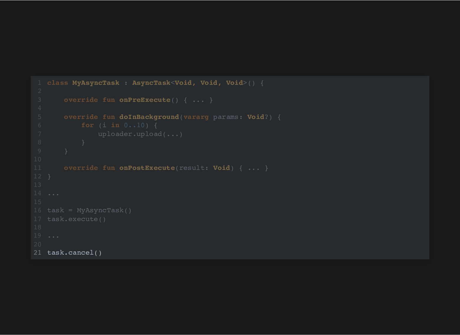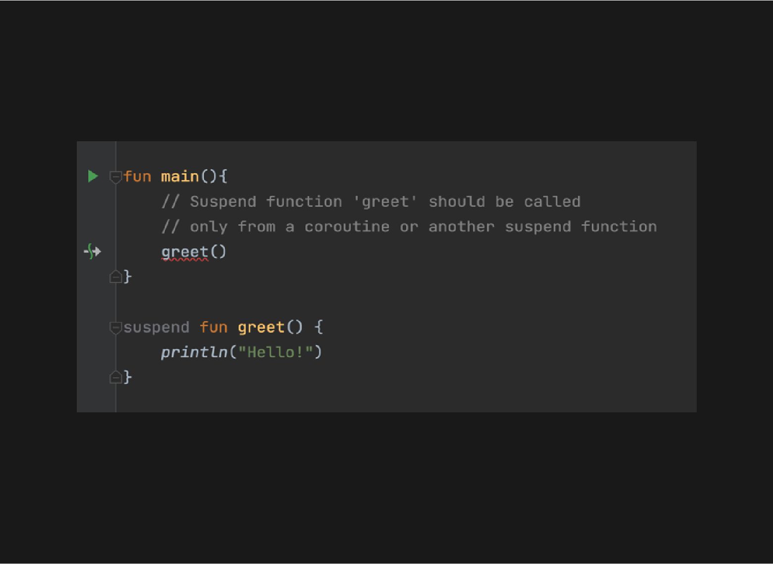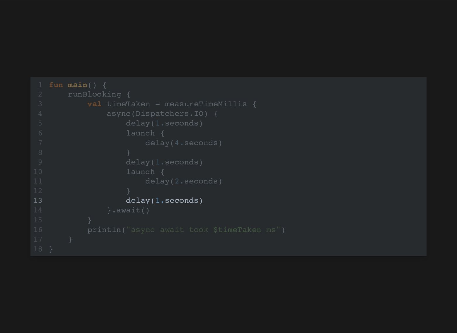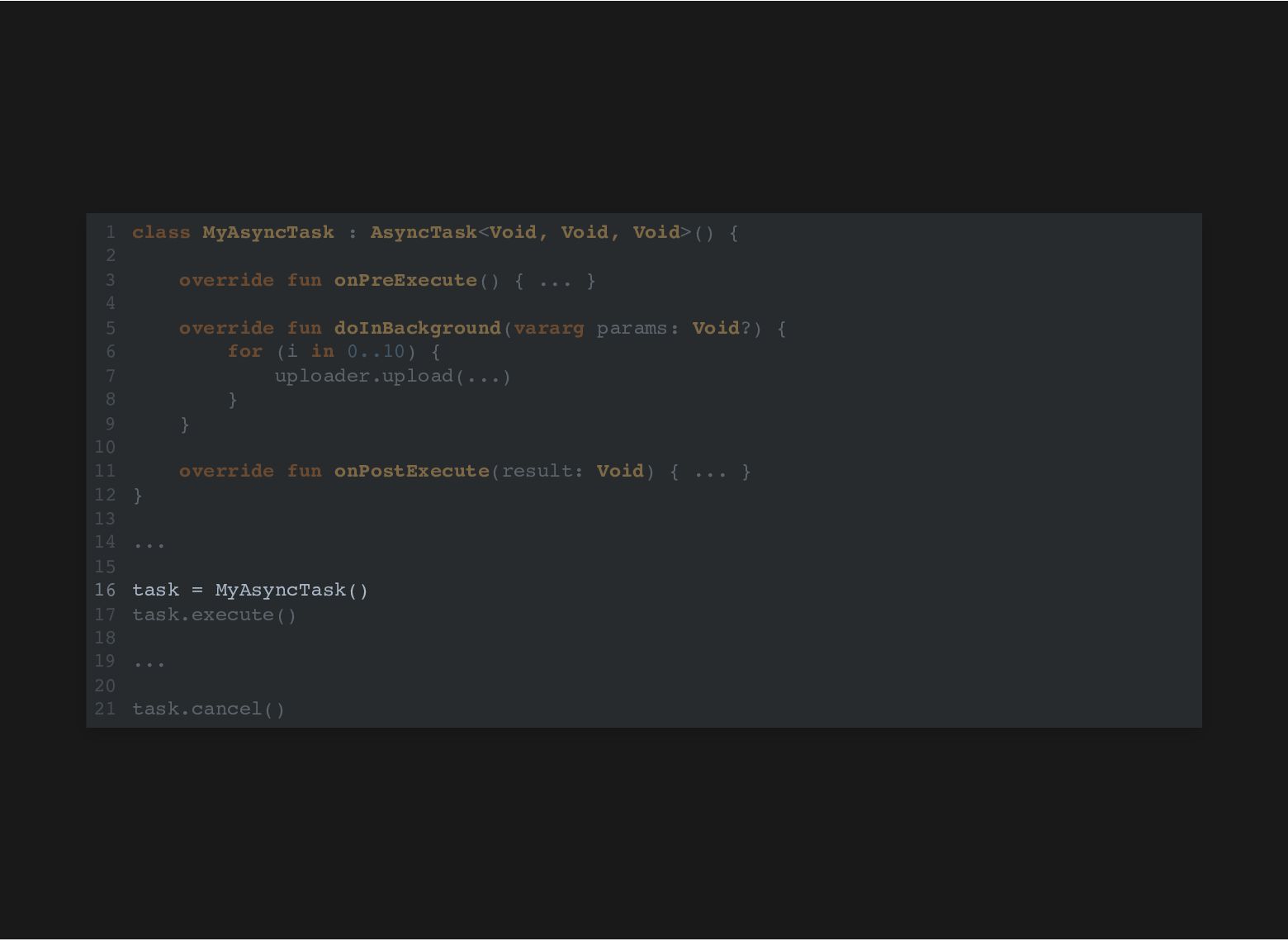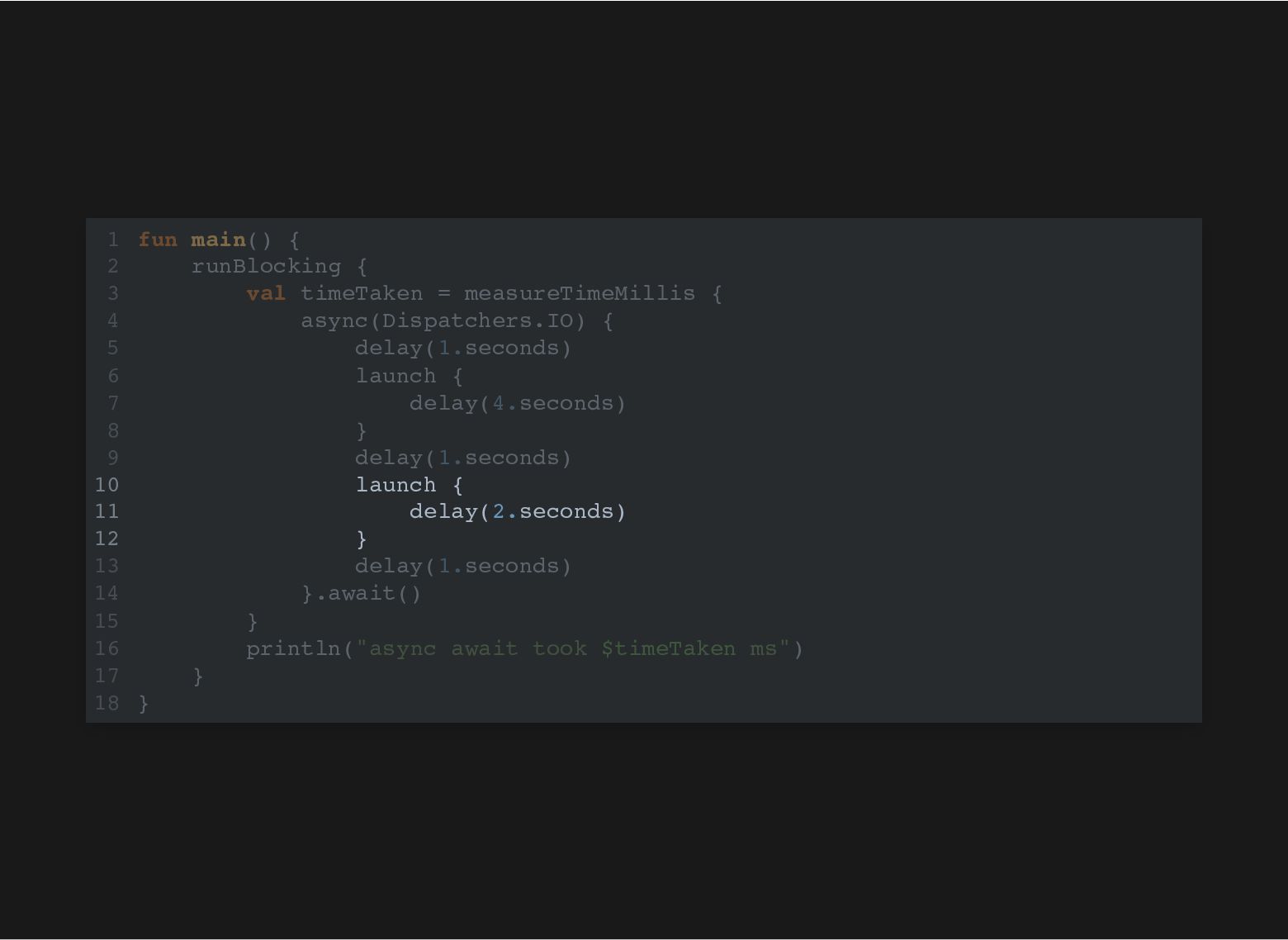 = object : Continuation<Unit>, CoroutineScope, Job { 3 init{ 4 context[Job]?.addChildren(this) 5 } 6 override val context = scopeContext + extraContext + this 7 override fun resumeWith(result: Result<Unit>) { 8 context[Job]?.waitForChildren() 9 } 10 } 11 12 val continuation = block.createCoroutineUnintercepted(completionCallback,complet 13 14 DispatchedContinuation(dispatcher,continuation).resumeWith(Result.success(Unit)) 15 } 16 val completionCallback = object : Continuation<Unit>, CoroutineScope, Job { fun CoroutineScope.launch(extraContext: CoroutineContext, block: suspend CoroutineSc 1 2 3 init{ 4 context[Job]?.addChildren(this) 5 } 6 override val context = scopeContext + extraContext + this 7 override fun resumeWith(result: Result<Unit>) { 8 context[Job]?.waitForChildren() 9 } 10 } 11 12 val continuation = block.createCoroutineUnintercepted(completionCallback,complet 13 14 DispatchedContinuation(dispatcher,continuation).resumeWith(Result.success(Unit)) 15 } 16 init{ context[Job]?.addChildren(this) } fun CoroutineScope.launch(extraContext: CoroutineContext, block: suspend CoroutineSc 1 2 val completionCallback = object : Continuation<Unit>, CoroutineScope, Job { 3 4 5 6 override val context = scopeContext + extraContext + this 7 override fun resumeWith(result: Result<Unit>) { 8 context[Job]?.waitForChildren() 9 } 10 } 11 12 val continuation = block.createCoroutineUnintercepted(completionCallback,complet 13 14 DispatchedContinuation(dispatcher,continuation).resumeWith(Result.success(Unit)) 15 } 16 context[Job]?.waitForChildren() fun CoroutineScope.launch(extraContext: CoroutineContext, block: suspend CoroutineSc 1 2 val completionCallback = object : Continuation<Unit>, CoroutineScope, Job { 3 init{ 4 context[Job]?.addChildren(this) 5 } 6 override val context = scopeContext + extraContext + this 7 override fun resumeWith(result: Result<Unit>) { 8 9 } 10 } 11 12 val continuation = block.createCoroutineUnintercepted(completionCallback,complet 13 14 DispatchedContinuation(dispatcher,continuation).resumeWith(Result.success(Unit)) 15 } 16 fun CoroutineScope.launch(extraContext: CoroutineContext, block: suspend CoroutineSc val completionCallback = object : Continuation<Unit>, CoroutineScope, Job { init{ context[Job]?.addChildren(this) } override val context = scopeContext + extraContext + this override fun resumeWith(result: Result<Unit>) { context[Job]?.waitForChildren() } } val continuation = block.createCoroutineUnintercepted(completionCallback,complet DispatchedContinuation(dispatcher,continuation).resumeWith(Result.success(Unit)) } 1 2 3 4 5 6 7 8 9 10 11 12 13 14 15 16