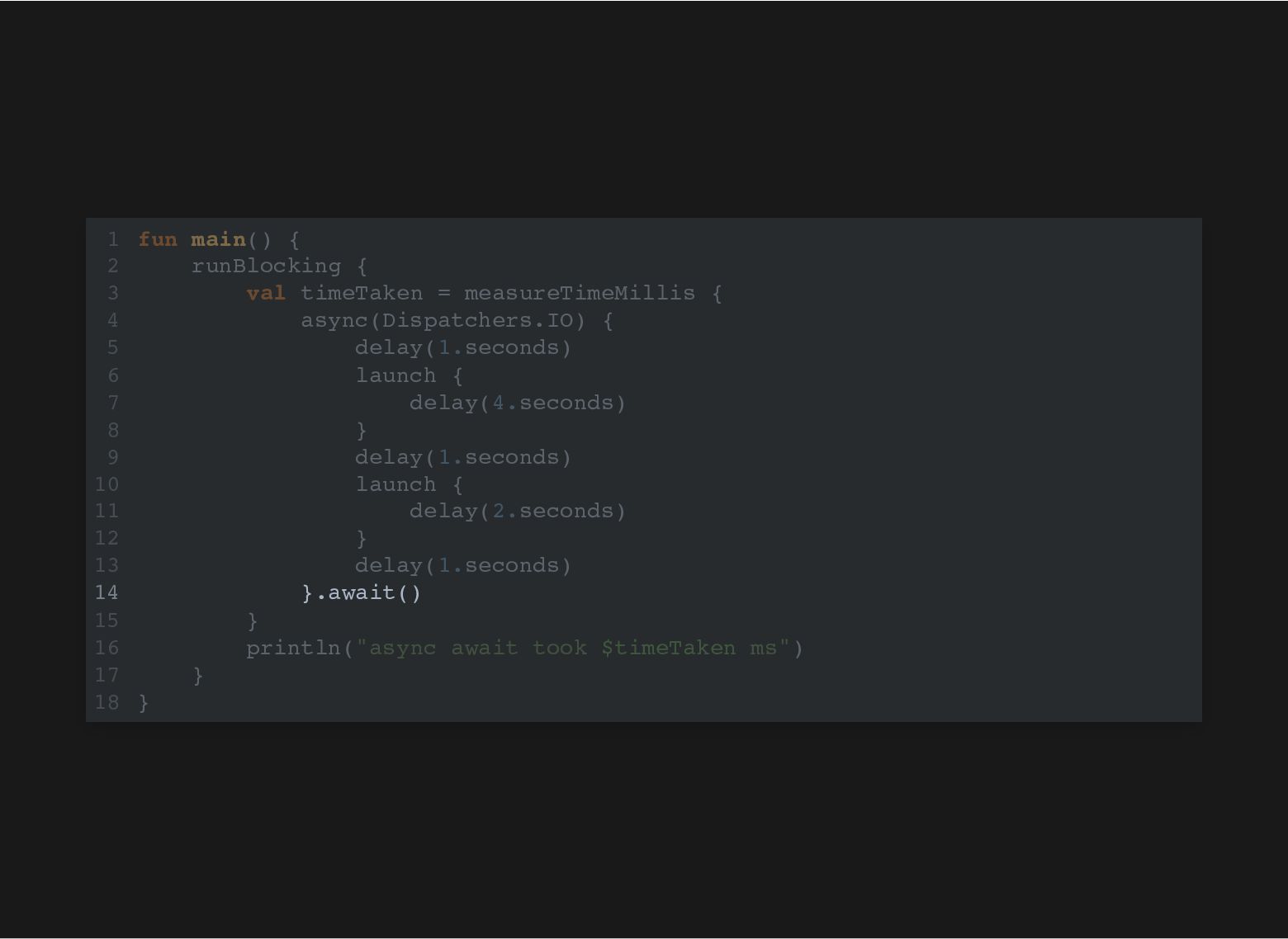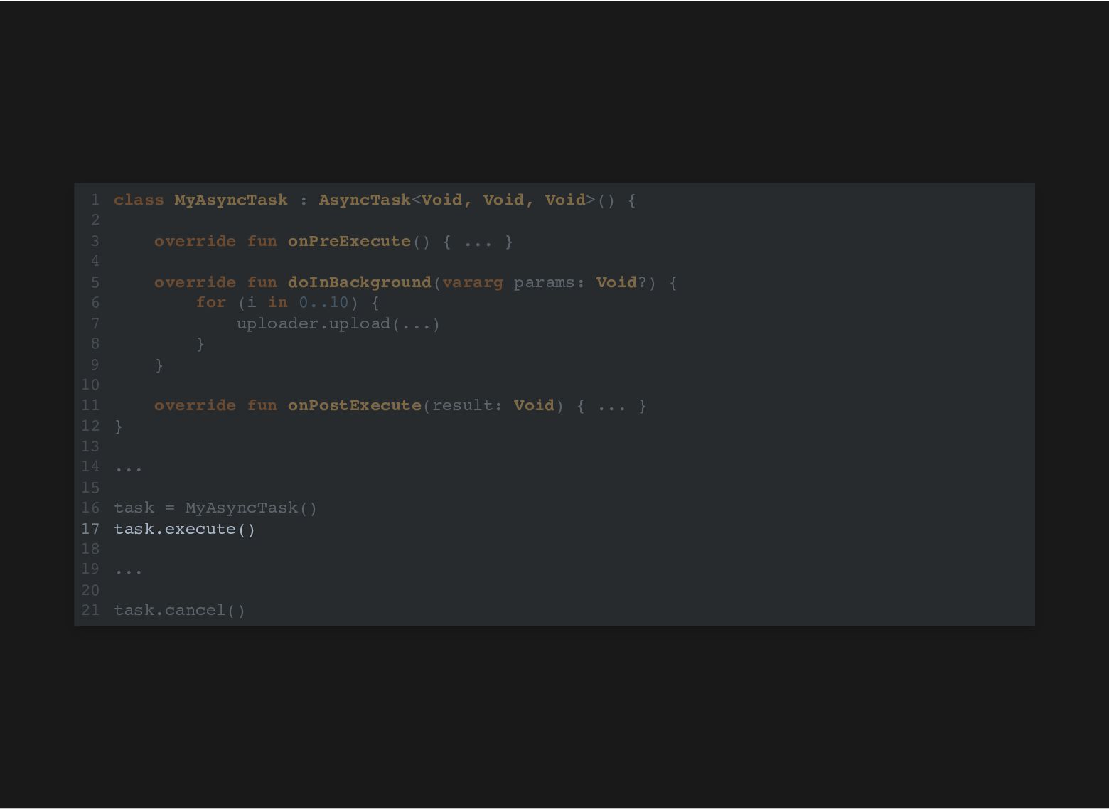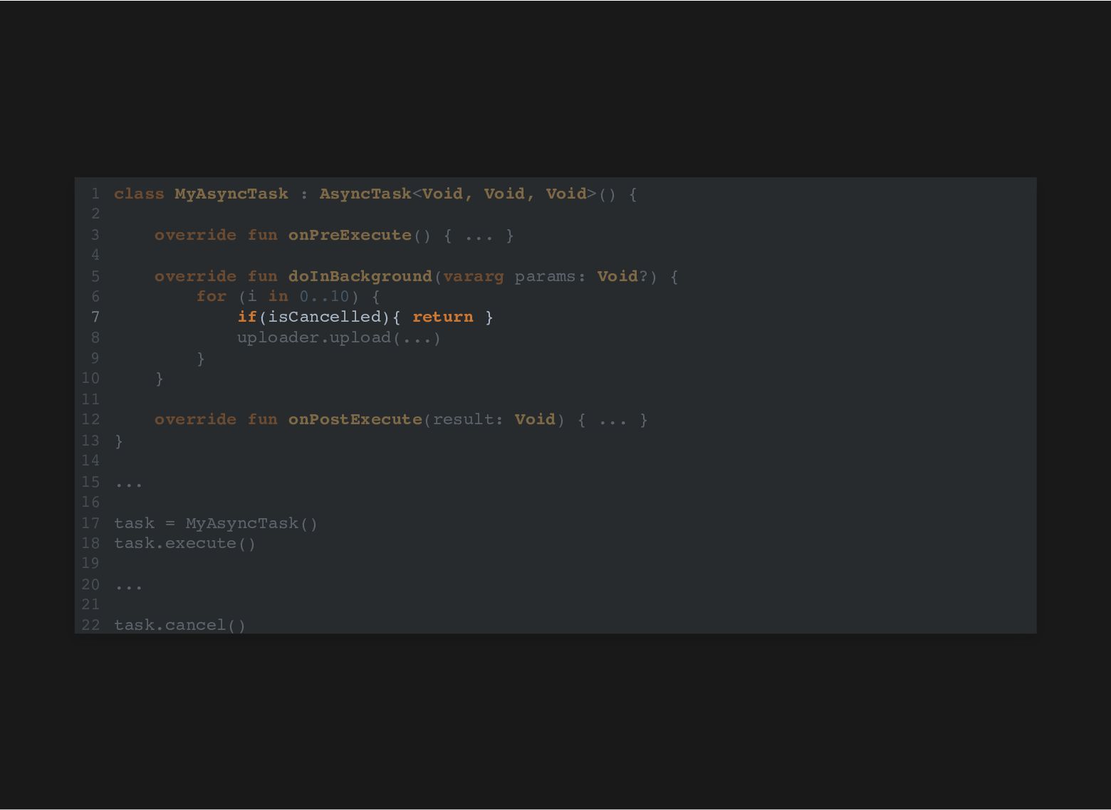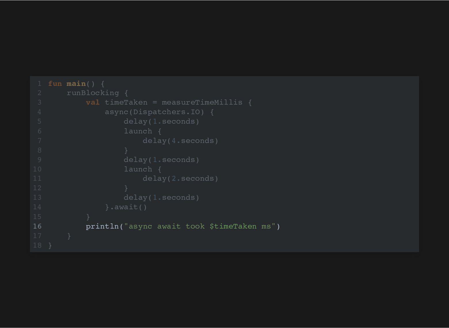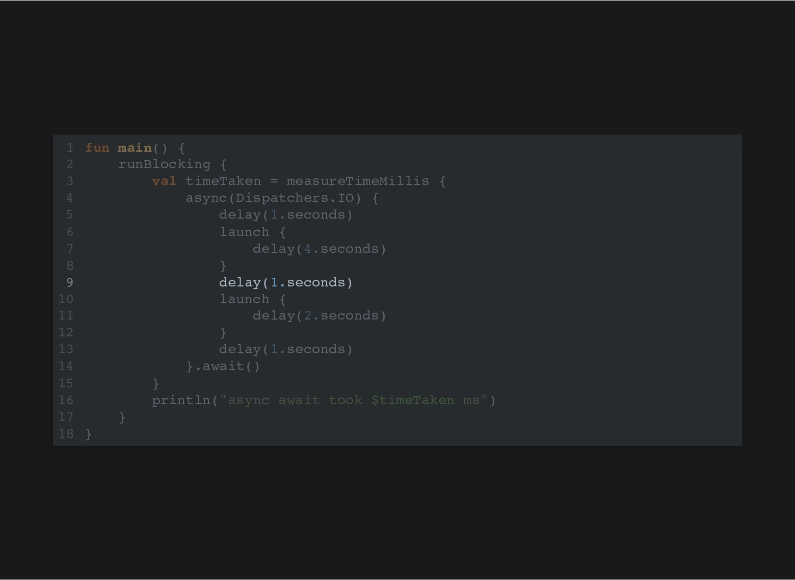 = object : Continuation<Unit>, CoroutineScope, Job { 3 init{ 4 context[Job]?.addChildren(this) 5 } 6 override val context = scopeContext + extraContext + this 7 override fun resumeWith(result: Result<Unit>) { 8 context[Job]?.waitForChildren() 9 } 10 } 11 12 val continuation = block.createCoroutineUnintercepted(completionCallback,complet 13 14 DispatchedContinuation(dispatcher,continuation).resumeWith(Result.success(Unit)) 15 } 16 val completionCallback = object : Continuation<Unit>, CoroutineScope, Job { fun CoroutineScope.launch(extraContext: CoroutineContext, block: suspend CoroutineSc 1 2 3 init{ 4 context[Job]?.addChildren(this) 5 } 6 override val context = scopeContext + extraContext + this 7 override fun resumeWith(result: Result<Unit>) { 8 context[Job]?.waitForChildren() 9 } 10 } 11 12 val continuation = block.createCoroutineUnintercepted(completionCallback,complet 13 14 DispatchedContinuation(dispatcher,continuation).resumeWith(Result.success(Unit)) 15 } 16 init{ context[Job]?.addChildren(this) } fun CoroutineScope.launch(extraContext: CoroutineContext, block: suspend CoroutineSc 1 2 val completionCallback = object : Continuation<Unit>, CoroutineScope, Job { 3 4 5 6 override val context = scopeContext + extraContext + this 7 override fun resumeWith(result: Result<Unit>) { 8 context[Job]?.waitForChildren() 9 } 10 } 11 12 val continuation = block.createCoroutineUnintercepted(completionCallback,complet 13 14 DispatchedContinuation(dispatcher,continuation).resumeWith(Result.success(Unit)) 15 } 16 context[Job]?.waitForChildren() fun CoroutineScope.launch(extraContext: CoroutineContext, block: suspend CoroutineSc 1 2 val completionCallback = object : Continuation<Unit>, CoroutineScope, Job { 3 init{ 4 context[Job]?.addChildren(this) 5 } 6 override val context = scopeContext + extraContext + this 7 override fun resumeWith(result: Result<Unit>) { 8 9 } 10 } 11 12 val continuation = block.createCoroutineUnintercepted(completionCallback,complet 13 14 DispatchedContinuation(dispatcher,continuation).resumeWith(Result.success(Unit)) 15 } 16 fun CoroutineScope.launch(extraContext: CoroutineContext, block: suspend CoroutineSc val completionCallback = object : Continuation<Unit>, CoroutineScope, Job { init{ context[Job]?.addChildren(this) } override val context = scopeContext + extraContext + this override fun resumeWith(result: Result<Unit>) { context[Job]?.waitForChildren() } } val continuation = block.createCoroutineUnintercepted(completionCallback,complet DispatchedContinuation(dispatcher,continuation).resumeWith(Result.success(Unit)) } 1 2 3 4 5 6 7 8 9 10 11 12 13 14 15 16