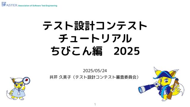 おまけ もう少し学びたいなと思ってくださった方へ 2025/06/04にテスコン編も開催予定です。 • テスト設計チュートリアル テスコン編 ’25 https://aster.connpass.com/event/355108/ 過去のちびこん編の資料や動画は、公開されています。 チュートリアルは、担当の審査員ごとに伝え方に特色があります。