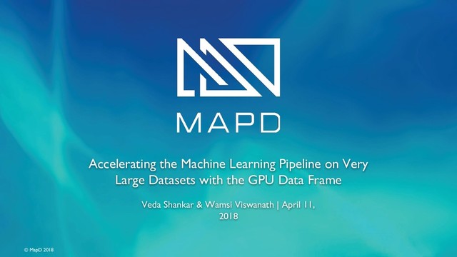 Veda Shankar (Senior Developer Advocate) and Wamsi Viswanath (Data Scientist) demonstrates on a very large dataset how to manage a full Machine Learning Pipeline with minimal data exchange overhead between MapD’s SQL engine and H2O’s generalized linear model library (GLM)..