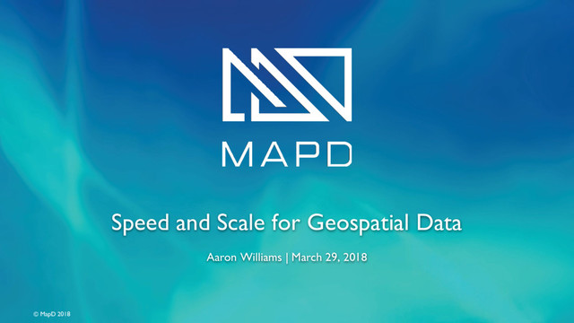 with Michael Flaxman (Geodesign Technologies) • An open dataset from the state of Florida with several billion points National Water Model • Working with Harvard Center for Geographic Analysis (Josh Lieberman and Ben Lewis) Open Source MapD Core Working Group Forming Soon • New features coming soon to the open source SQL engine • If you’re interested in participating, talk with the MapD team