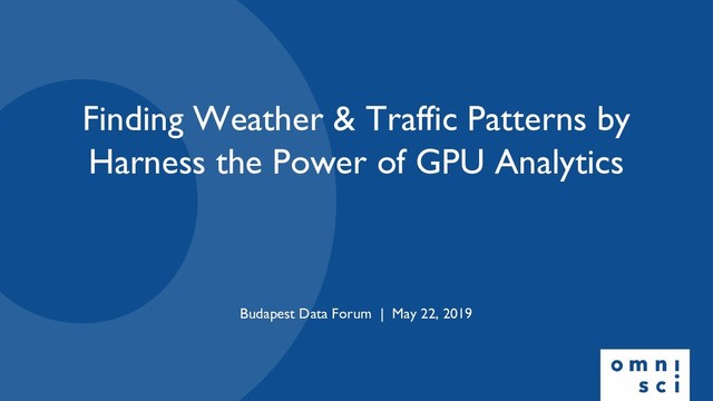 However, analyzing large amounts of spatiotemporal data such as traffic and weather data has usually been considered tedious, difficult, and time-consuming. In this presentation, we’ll demonstrate how to use software tools from OmniSci, the pioneer in GPU-Accelerated analytics, to perform in-depth analysis on San Francisco’s traffic flow and find significant correlations between traffic congestion and weather.