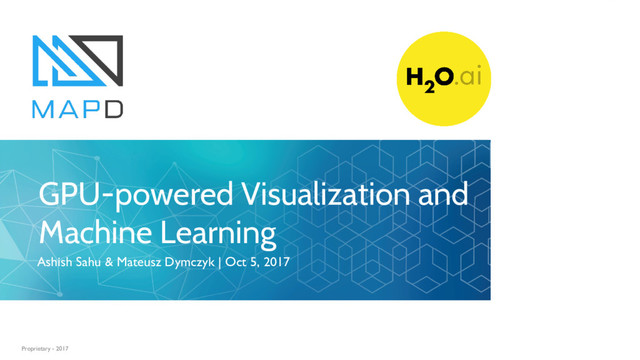 This Meetup explained how we have implemented an end-to-end machine learning powered by GOAI. We will show how GDFs break down the silos to enable interactive data exploration, model training, and model scoring, that is lightning-fast by virtue of avoiding any serialization overhead. We will demo how data scientists may use MapD to visualize billions of rows, and use it to select features interactively. We show the integration with H2O.ai to seamlessly train models and predict outcomes.