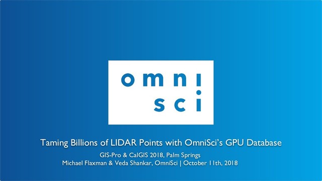 & CalGIS 2018, Palm Springs Michael Flaxman & Veda Shankar, OmniSci | October 11th, 2018