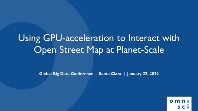 our live demos for yourself! • omnisci.cloud Get an OmniSci instance in 60 seconds • omnisci.com/platform/downloads/ Download a 30-day trial of OmniSci • github.com/omnisci/community_datasets Check out our catalog of big datasets (including OSM) • community.omnisci.com Ask questions and share your experiences Self Discovery