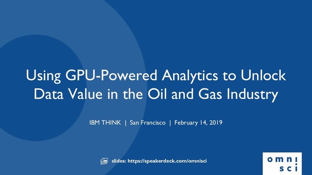 In this talk, I2Enabled and OmniSci (formerly MapD) will demonstrate an example, based on a real-world application used in the oil and gas industry, showing why and how companies are innovating with GPU-powered analytics. We’ll show how the demonstrated application was built, and explain how to use the OmniSci APIs to build a similar application for yourself.