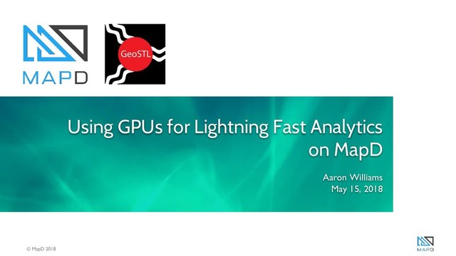 In this tutorial, Aaron Williams, VP of Community at MapD, will demo how MapD is able to leverage multiple GPUs per server to extract orders-of-magnitude performance increases over CPU-based systems, bringing interactive querying and visualization to multi-billion (with a ‘b’) row datasets.