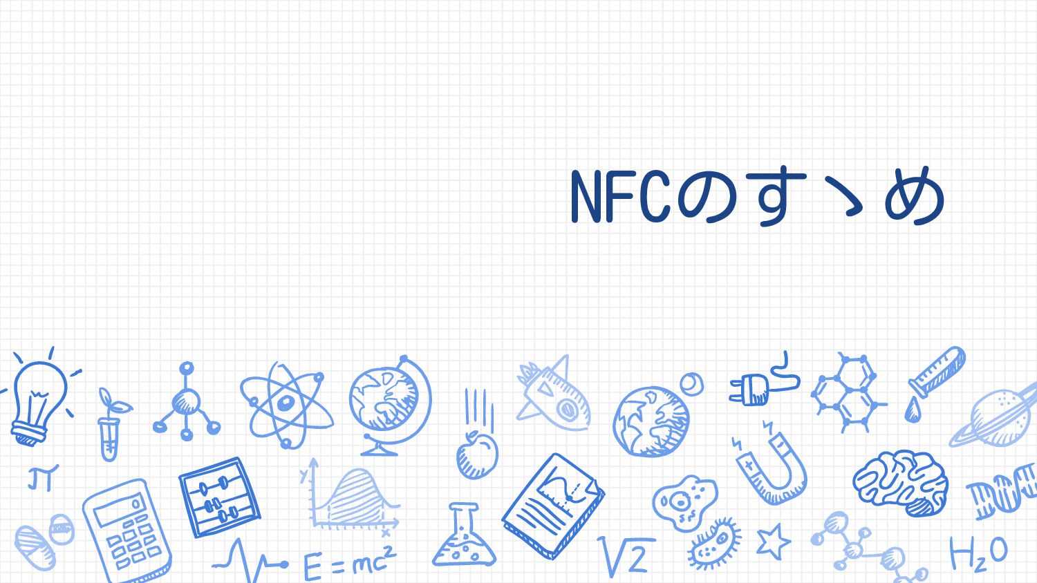 Near field communication(近距離無線通信)の略であ り、RFID (Radio Frequency IDentification) と呼ばれる 無線通信による個体識別の技術の一種であり、近距離無線 通信の技術を統一化した世界共通の規格である。