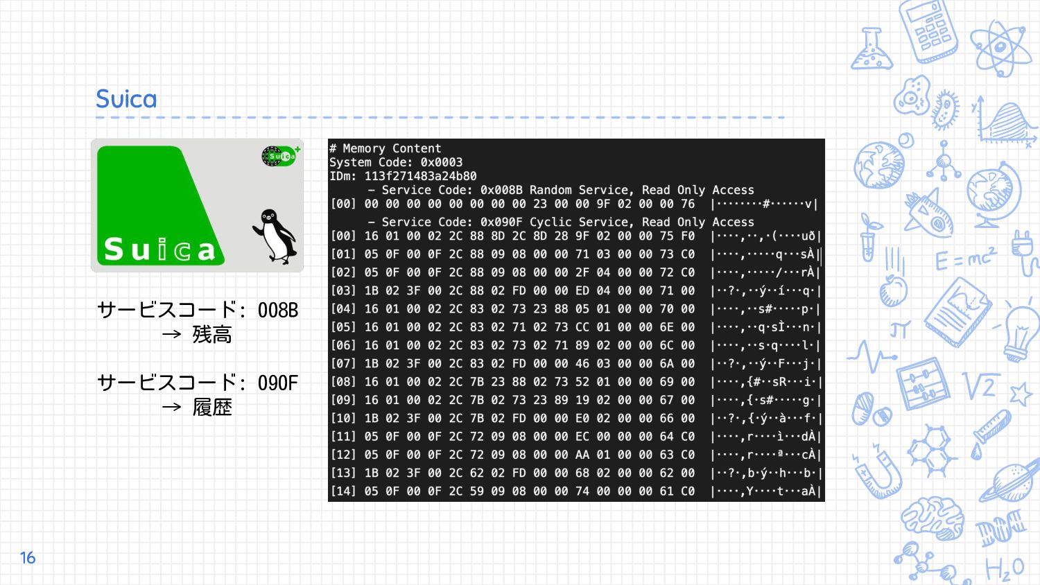 Suica 16 サービスコード: 008B → 残高 サービスコード: 090F → 履歴