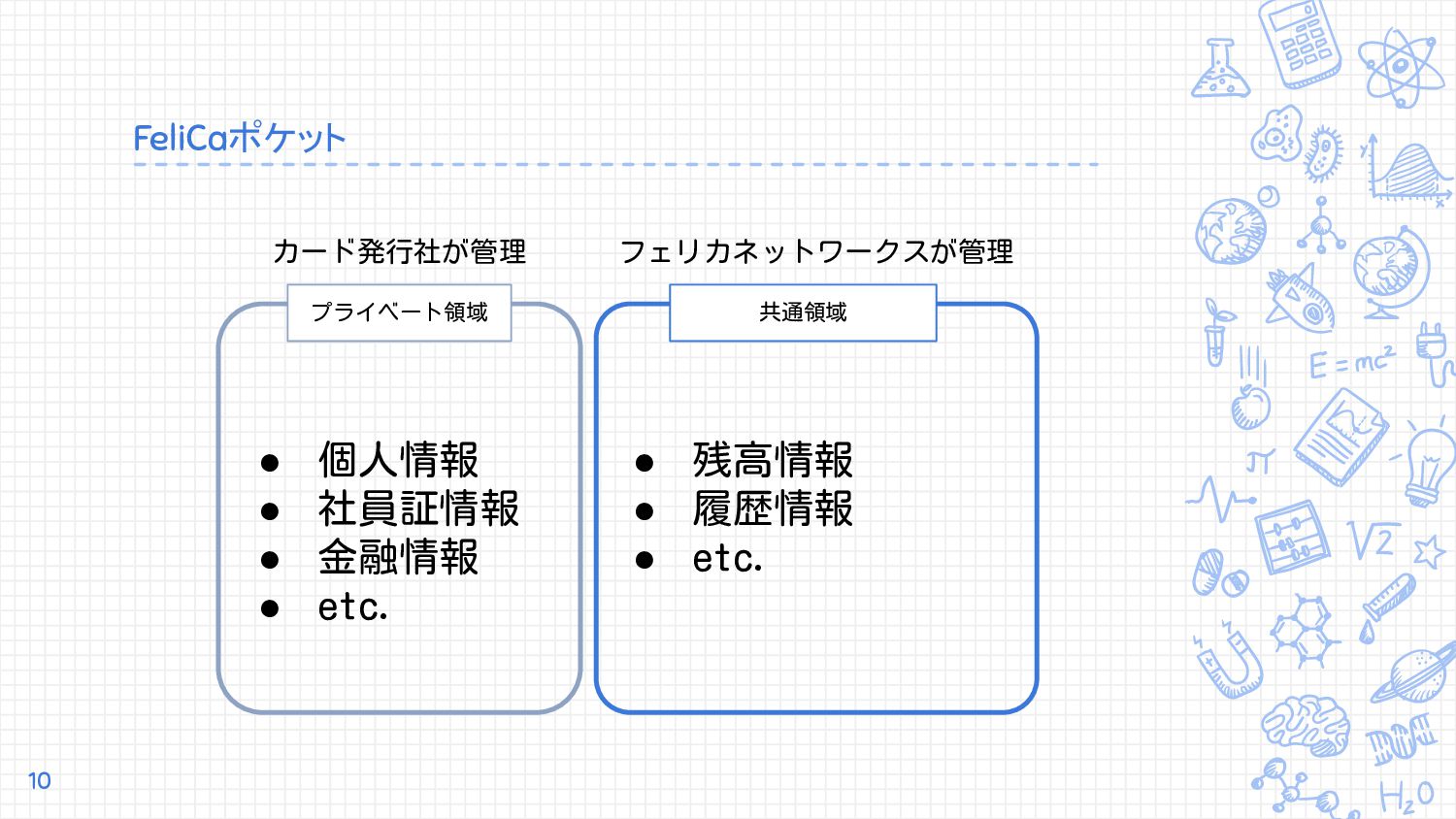 • 残高情報 • 履歴情報 • etc. 共通領域 プライベート領域 フェリカネットワークスが管理 カード発行社が管理