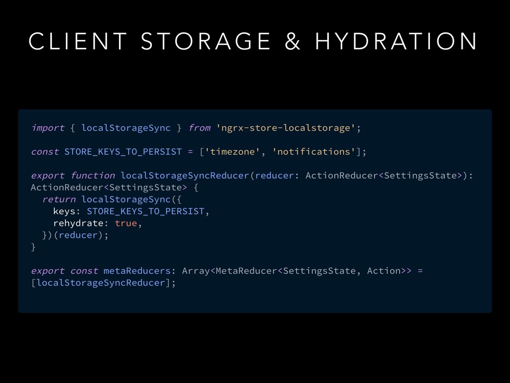 H Y G I E N E [Login Page] Login [Menu Page] Add Wonton [Menu Page] Add Teriyaki [Menu Page] Add Noodle [Cart] Checkout [Auth API] Login Success [Auth API] Login Failure [Cart API] Checkout Success [Cart API] Checkout Failure [WS API] Update Availability [WebSocket] Open [WebSocket] Disconnected [IndexDB] Save Success Good Action Hygiene with NgRx @ng-conf - Mike Ryan