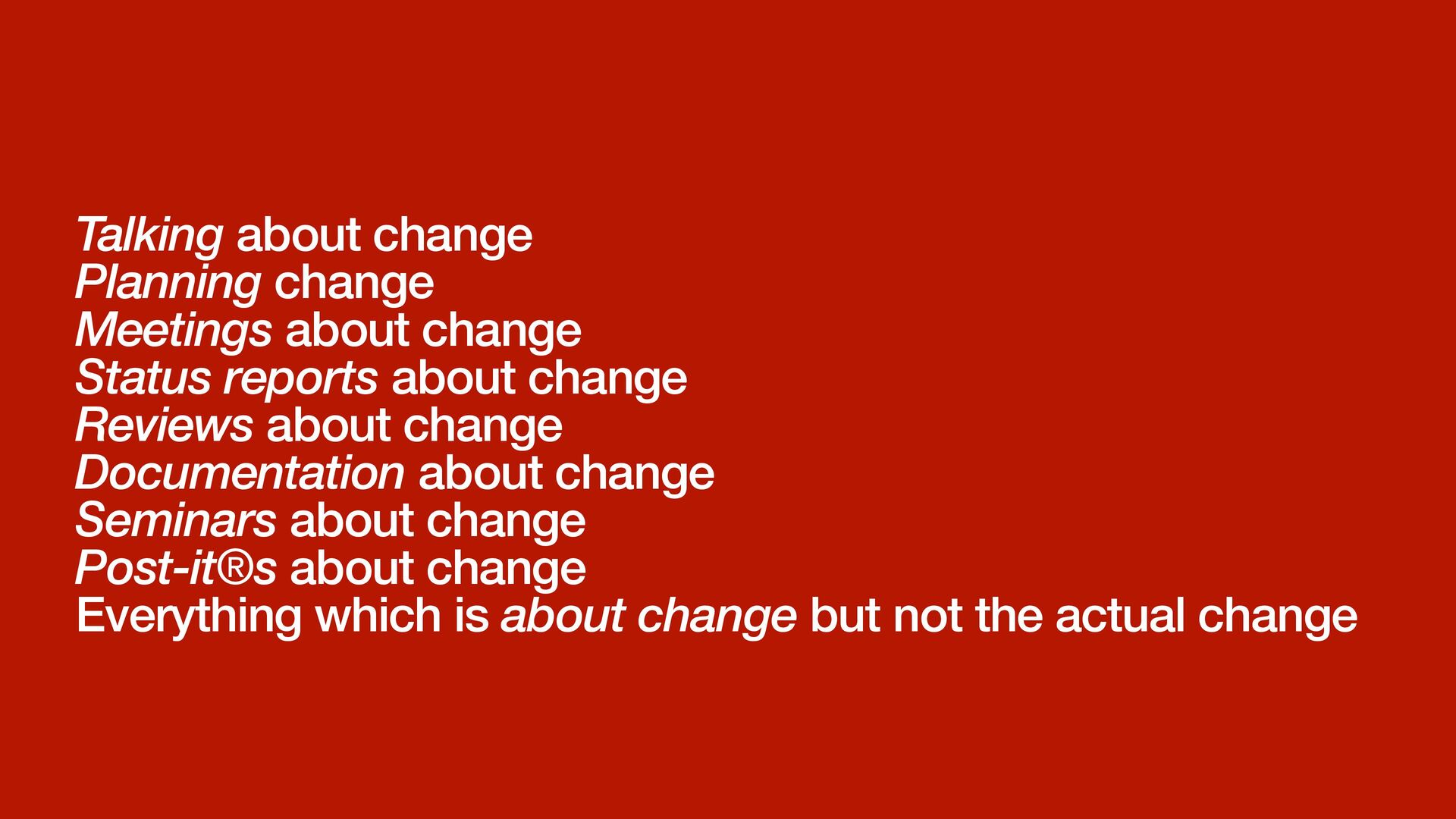 Reflecting on decades of experience working with the largest enterprises around Europe I try to give you my take on why we fail to change anything in the enterprise and give you my take on what to do about it.