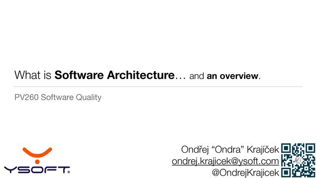 An introductory talk about Software Architecture given as part of the PV260 course at Faculty of Informatics, Masaryk University in Brno, Czech Republic.