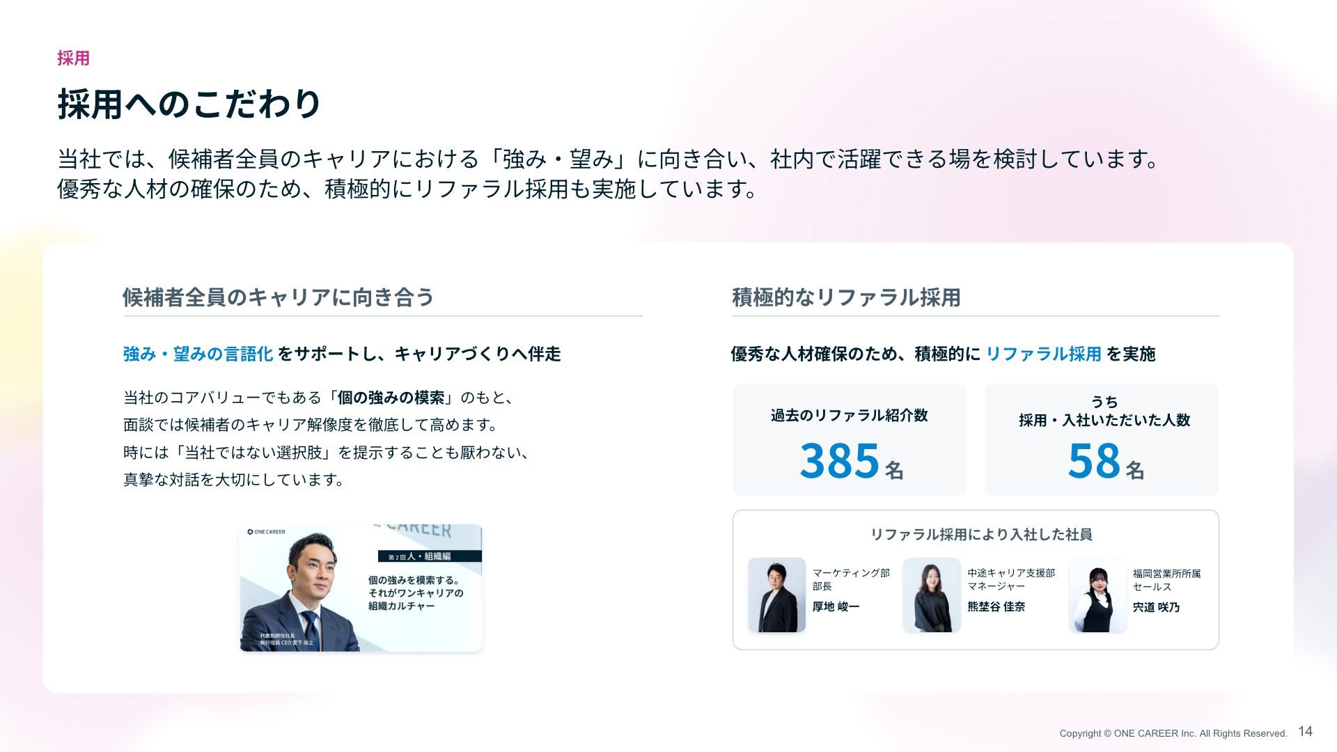 Copyright © ONE CAREER Inc. All Rights Reserved. 採 用
