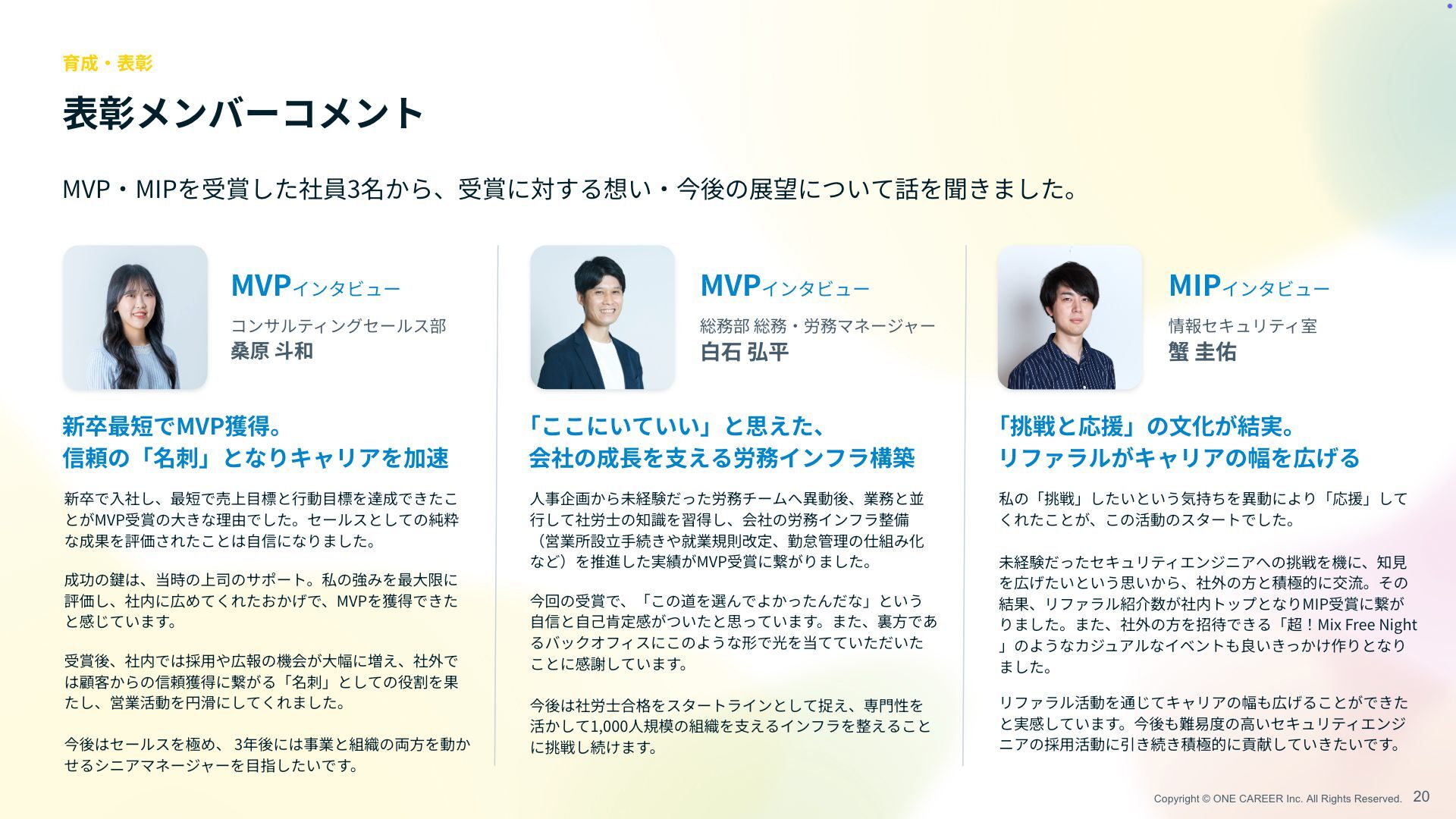 Copyright © ONE CAREER Inc. All Rights Reserved. 表彰メンバーコメント 20
