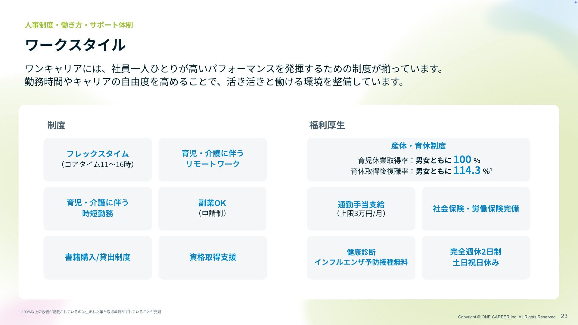 Copyright © ONE CAREER Inc. All Rights Reserved. 23 ワークスタイル