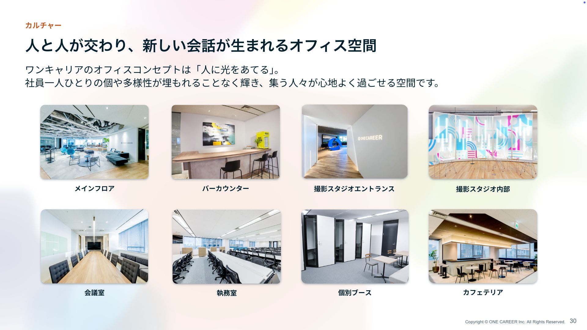 Copyright © ONE CAREER Inc. All Rights Reserved. ਓͱਓ͕ަΘΓɺ৽͍͠ձ͕ੜ·ΕΔΦϑΟεۭؒ 30