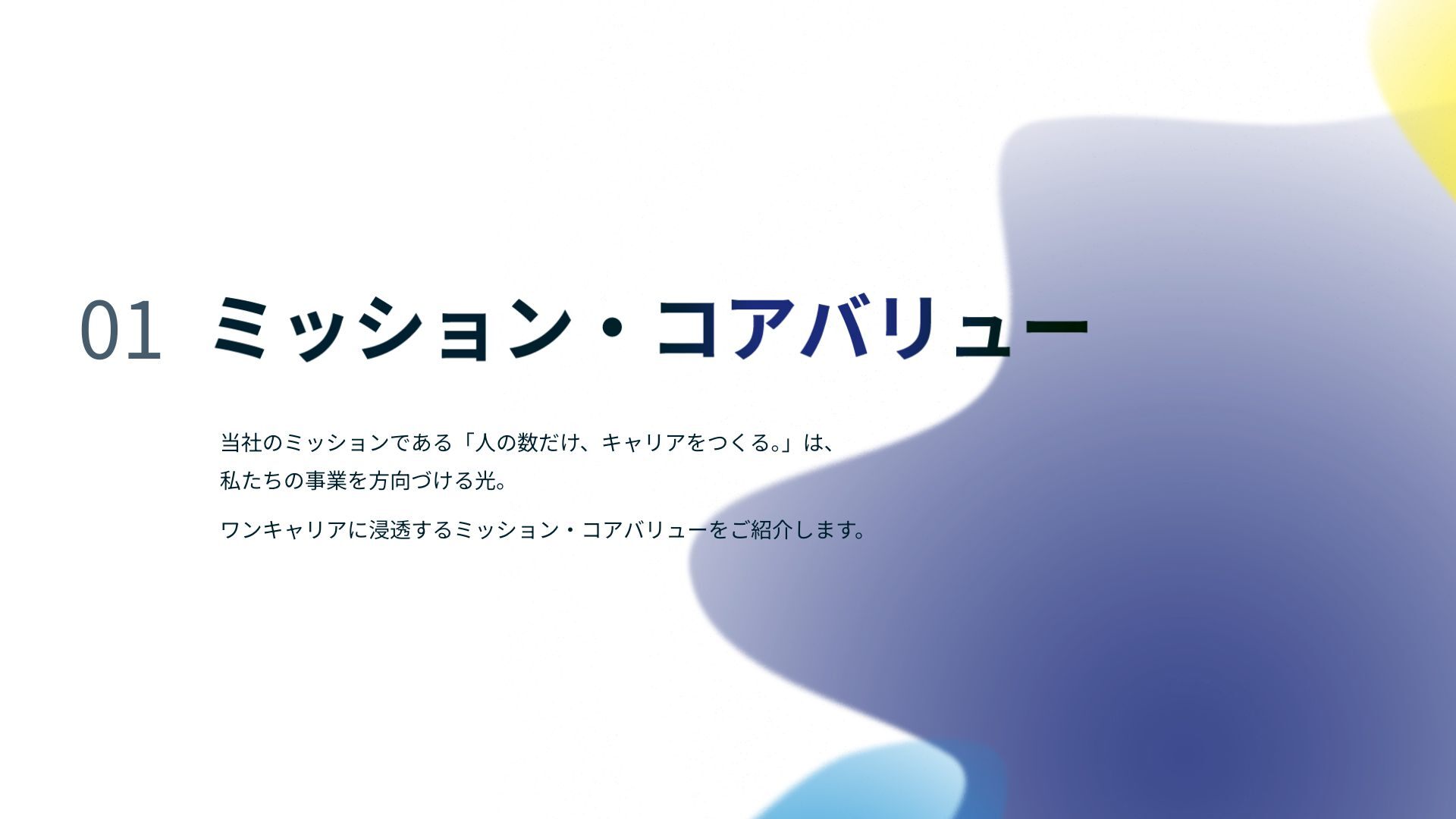 0 1 当社のミッションである「 人 の数だけ、キャリアをつくる。」は、 私たちの事業を 方 向づける光。 ワンキャリアに浸透するミッション