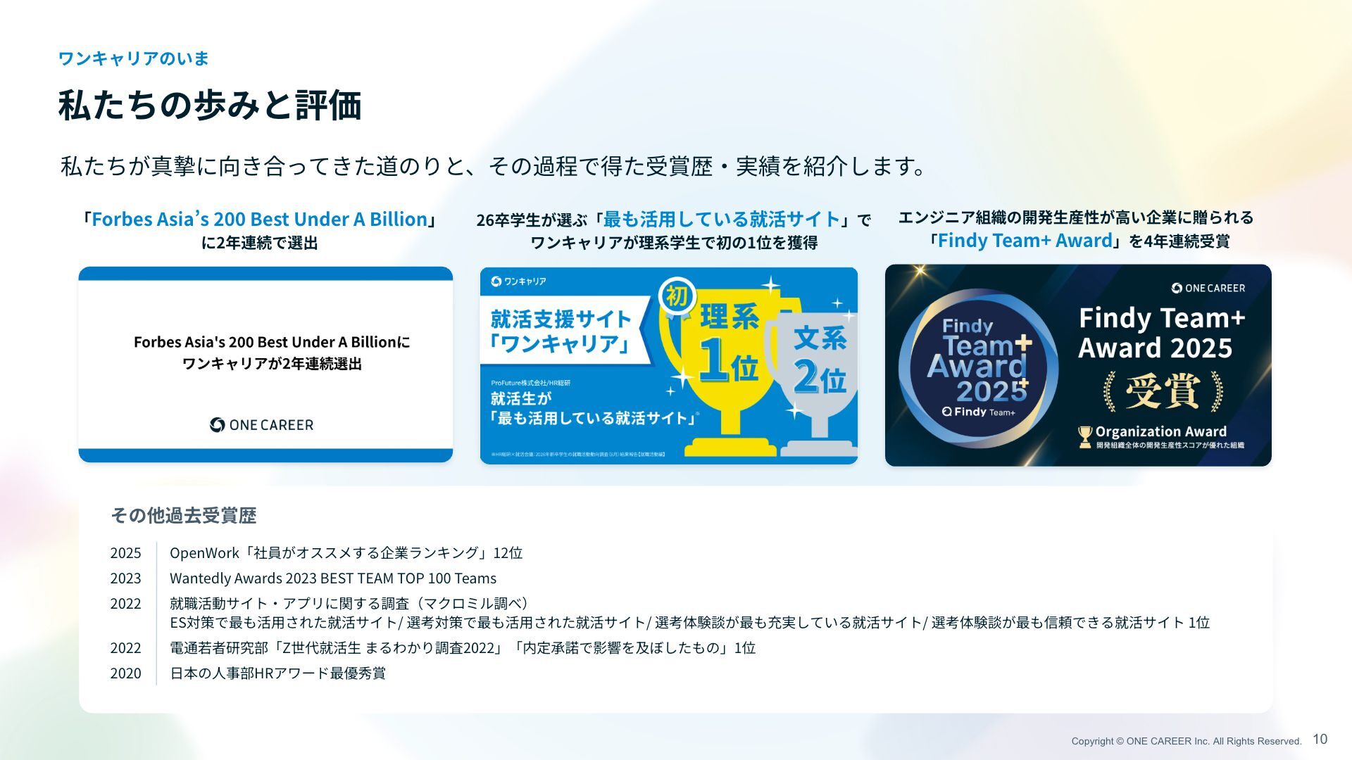 Copyright © ONE CAREER Inc. All Rights Reserved. 私たちの歩みと評価 ワンキャリアのいま
