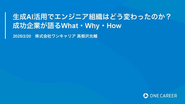 テックリードの高根沢が「生成AI活用でエンジニア組織はどう変わったのか? 成功企業が語るWhat・Why・How」でLTをした際の資料となります。