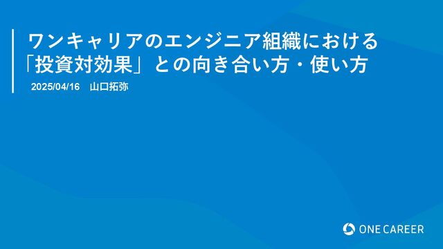 シニアエンジニアリングマネージャーの山口が、「事業価値は測れるのか?開発における投資対効果の高め方」で発表した際の資料となります。