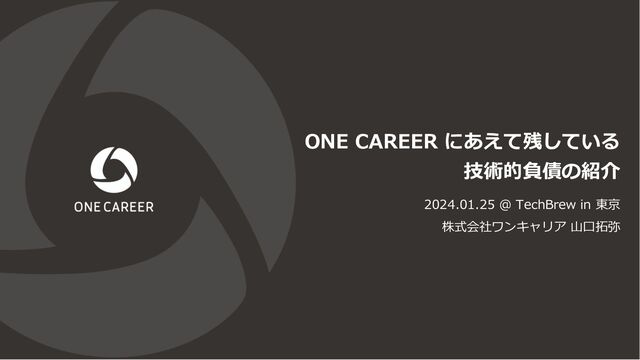 in 東京 - ONE CAREER にあえて残している技術的負債の紹介 ONE CAREER で解消した技術的負債の紹介 in 2023 CI / CD の拡充 パフォーマンスの 最適化 開発者体験の向上 • 静的型解析(tsc)の導⼊、型エラーの解消 • 落ちていても無視されていた⾃動テスト・リンターの復活 • Blue - Green Deployment、Feature Flag • ユーザー影響が⼤きかったスロークエリの解消 • KVS を使ったクエリ結果のキャッシング • ファーストビューから外れた要素の遅延レンダリング • 起動できなかった docker-compose.yml の調整 • E2E テスト(Capybara)の実⾏環境の準備 on ローカルマシン • Ruby, Rails, Node, Vue, Nuxt などのアップデート