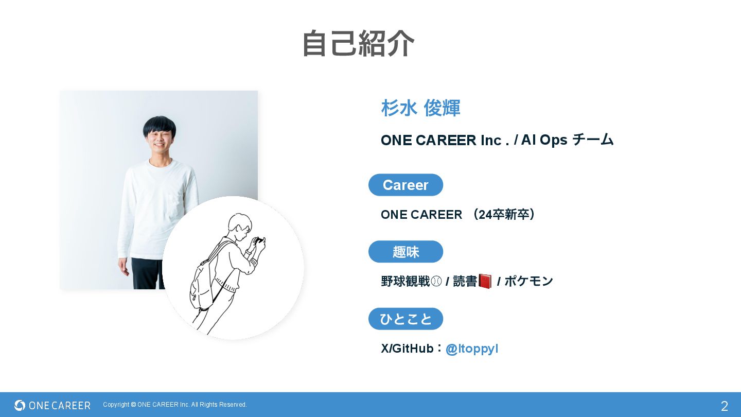 Inc . ࣗݾհ Career झຯ ͻͱ͜ͱ 2 ਿਫ ढ़ً / AI Ops νʔϜ ONE CAREER ʢ24ଔ৽ଔʣ ٿ؍ઓ⽁ / ಡॻ📕 / ϙέϞϯ X/GitHubɿ@ltoppyl