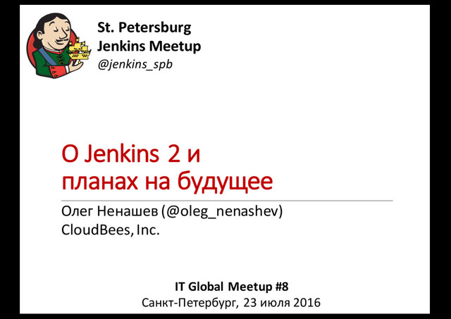 базового набора плагинов •Security-‐опции включены по-‐умолчанию •Улучшения UI: •Новый мастер установки/апгрейда •Улучшение страниц конфигурации задач •Категоризация задач •Folders и Pipeline по-‐умолчанию Jenkins 2. Что внутри? http://bit.ly/jenkins20 10