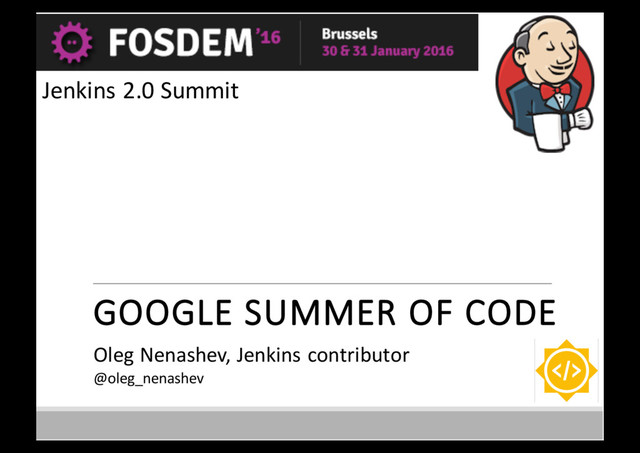 GOOGLE SUMMER OF CODE Jenkins 2.0 Summit Oleg Nenashev, Jenkins