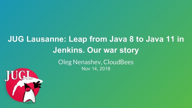 Jenkins, one of the leading open-source automation servers, has not been supporting Java 9 and above since its official release. Over the last year Jenkins contributors were working towards the support of Java 11 (Jenkins JEP-211). Jenkins has a huge and sometimes legacy Java/Groovy/native codebase, includes DSL engines, and depends on many upstream libraries and modules (including ones deleted from Java 11). It was a thorny way, but Java 11 support is almost ready to be released.
