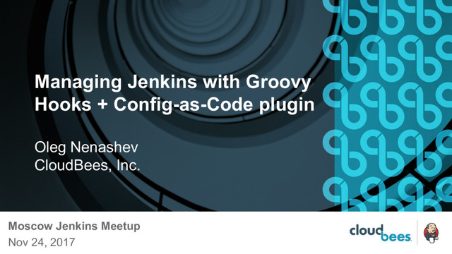 This is an english version of my talk about managing Jenkins configurations with Groovy Boot Hooks and about the new Configuration-as-Code Plugin Initiative (JEP-201).
